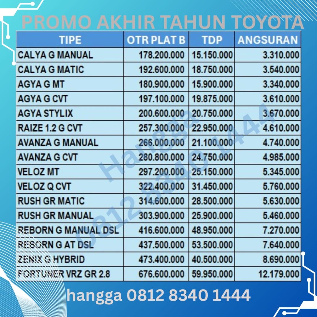 Selamat Datang di Promo Toyota Terbaik, kami memberikan segala kemudahan dan kepuasan pelanggan untuk memilih mana varian mobil yang diinginkan. Menjadi prioritas utama kami untuk menciptakan kenyamanan pelanggan.